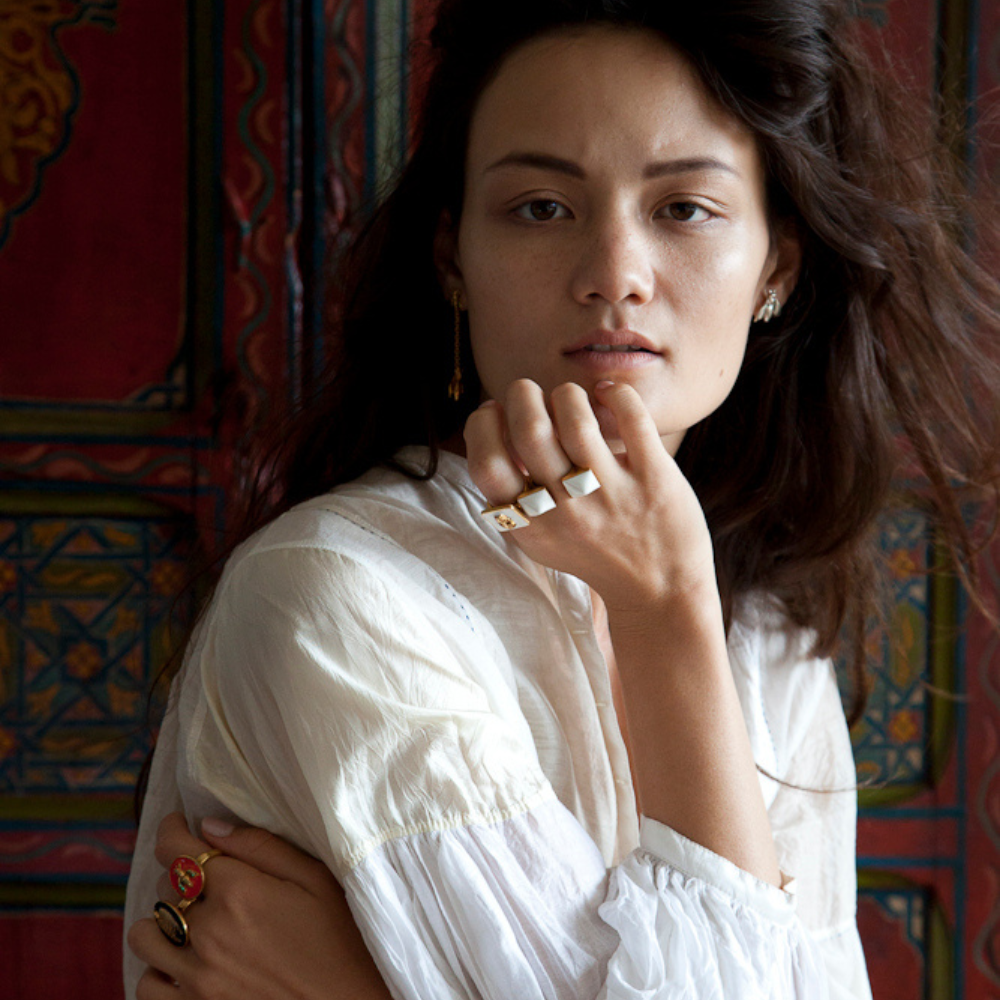 Cleopatra Ring | Sterling Silver and Gold Cabochon